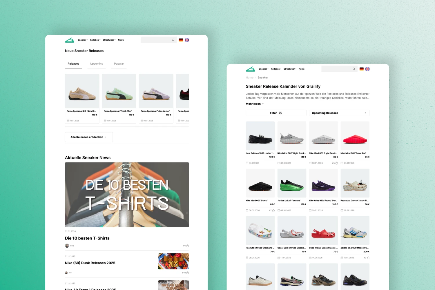 Releases, Restocks und News klar gebündelt. Grailify wird zur täglichen Anlaufstelle für alle, die keine Drops verpassen wollen.